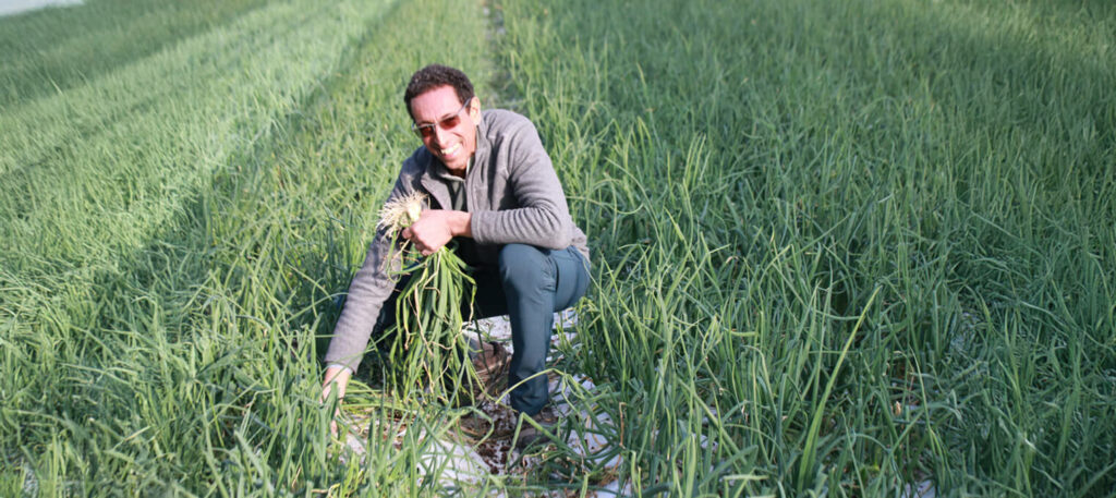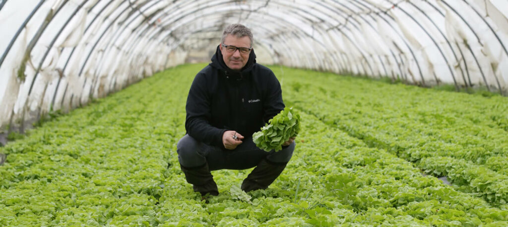 Il cultive aujourd’hui 4,5 hectares, dont 6 000 m² sous abris. Il a notamment fait le choix de développer la production de cébettes en hiver, une culture qu’il est fier d’avoir remise au goût du jour. Au-delà de ses bénéfices pour les sols et la santé, la cébette présente un intérêt souvent méconnu : elle favorise la dynamique sociale de la ferme. En effet, cette culture permet de maintenir une activité en période maraîchère creuse et ainsi de créer des emplois agricoles durables, dans des conditions de travail qu’il tient à rendre de qualité pour ses salariés.