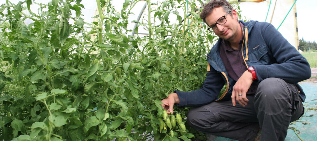 Lorsqu’il a appris que des serres déjà cultivées en agriculture biologique étaient à vendre à proximité, il a saisi l’opportunité de s’installer à 32 ans, une décision qu’il ne regrette pas. Grâce à sa « chapelle » en verre, située près du littoral sur des terres de galets conservant la chaleur, il peut produire naturellement des légumes précoces non chauffés : fraises, courgettes ou encore haricots. Récoltés et livrés le jour même, ils garantissent une fraîcheur optimale.
